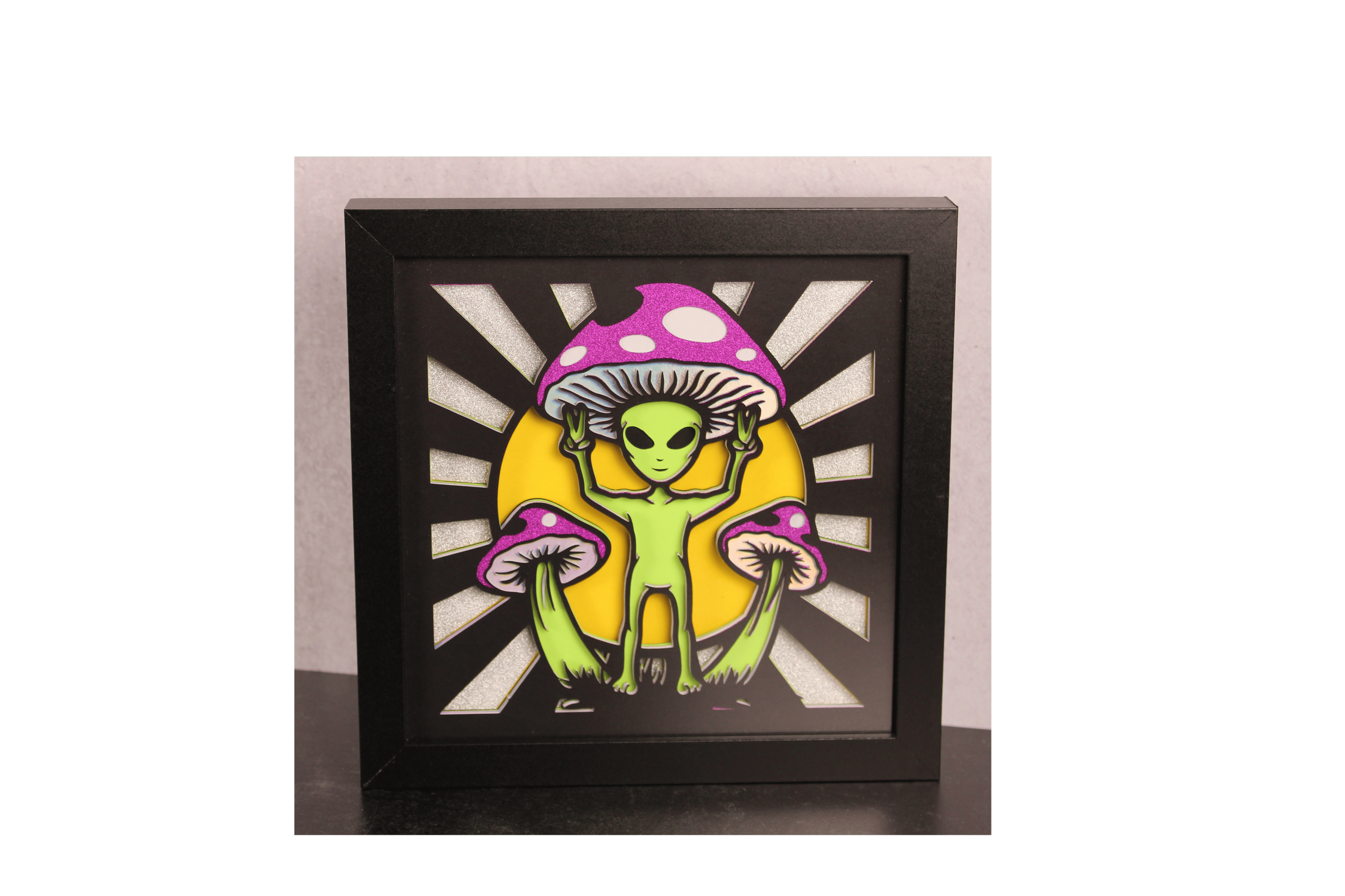 Offered in an 8” x 8” frame with a glass front. Hanging hardware is already on the back & the piece is wide enough to sit securely on a shelf.